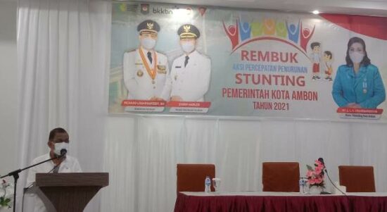 Ambon -Untuk mewujudkan generasi emas pada 2045 mendatang, Pemerintah Kota Ambon menggelar rembuk angka percepatan penurunan stunting dan Deklarasi Penandatanganan komitmen Pencegahan
