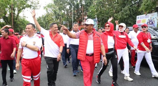 AMBON– Gubernur Maluku Murad Ismail melepas ribuan peserta Jalan Sehat dalam rangka menyambut Hari Ulang Tahun Kemerdekaan Republik Indonesia (HUT RI) dan