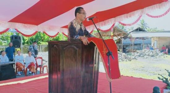 MASOHI-Wakil Gubernur Maluku Barnabas Nathaniel Orno, menghadiri acara peletakan Batu Penjuru Gedung Gereja Silo Jemaat GPM Sehati, Kecamatan Amahai, Kabupaten Maluku Tengah,