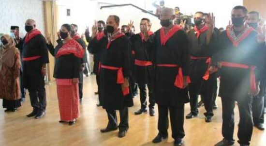 AMBON– Wakil Walikota (Wawali) Ambon, Syarif Hadler bertempat di Unit Layanan Administrasi (ULA) Balai Kota Ambon, meresmikan anggota Saniri Negeri Nusaniwe dan