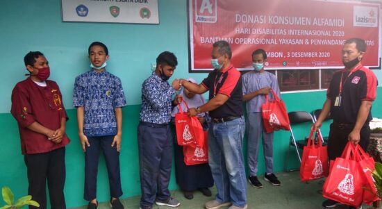 AMBON-Alfamidi dan Lembaga Amil, Zakat, Infaq dan Shodaqoh Muhammadiyah (LAZISMU) sebagai salah satu pengelola donasi konsumen Alfamidi, membantu panti dan penyandang disabilitas