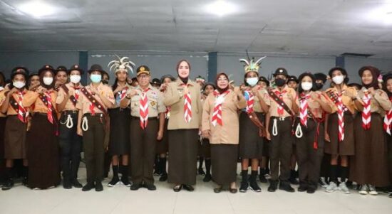 AMBON-Ketua Kwartir Daerah (Kwarda) Gerakan Pramuka Maluku Widya Pratiwi Murad, melepas 11 Kwartir Cabang (Kwarcab) Kabupaten/Kota se-Maluku (Kontingen Daerah Maluku) menuju Jambore