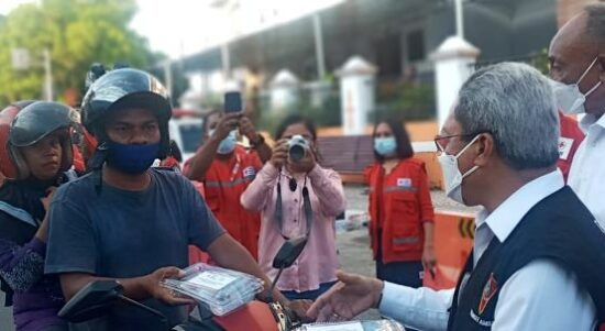 Ambon –Palang Merah Indonesia (PMI) Provinsi Maluku gandeng Dinas Pemadam Kebakaran dan keselamatan (Damkar) Kota Ambon membagikan 300 takjil kepada masyarakat yang