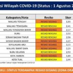 AMBON-Kota Ambon, Provinsi Maluku kembali masuk ke daerah dengan resiko sedang, atau zona orange penyebaran Covid-19 di Indonesia. Ambon bersanding dengan Maluku