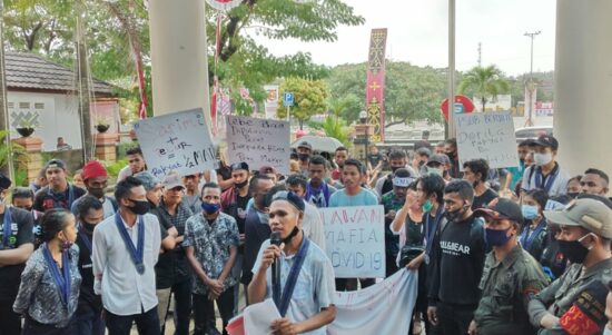 AMBON -Gerakan Mahasiswa Kristen Indonesia (GMKI) Cabang Ambon melakukan demo di depan Balai Kota Ambon, Kamis (3/9/2020), sekitar pukul 11.05 WIT, Kamis