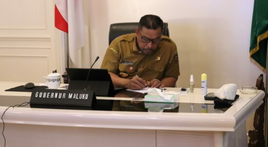 AMBON– Gubernur Maluku, Murad Ismail didampingi Sekretaris Daerah Maluku Kasrul Selang, Asisten I Bidang Pemerintahan Franky Papilaya dan Kepala Biro Pemerintahan Setda
