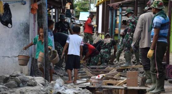 Satgas TMMD Dibantu Anak-anak Membangun Drainase