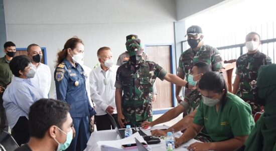 Ambon – Pangdam XVI/ Pattimura, Mayjen TNI Richard Tampubolon membuka serbuan vaksin yang digelar di Pelabuhan Yos Sudarso, Ambon, Rabu (23/02/2022). Tak