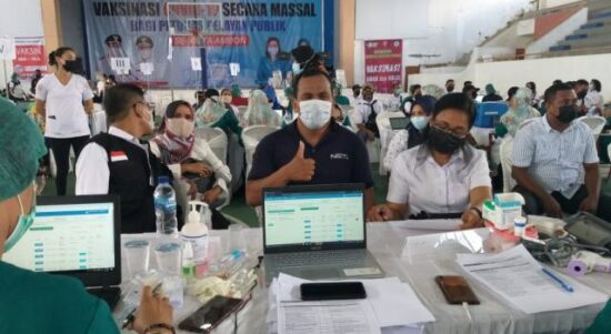 Ambon –Sejumlah wartawan di Kota Ambon mulai disuntik vaksin Covid-19 Sinovac. Vaksinasi yang dilakukan Pemerintah Kota Ambon yang berlangsung secara massal di