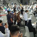 JAKARTA- Sebanyak 5.512 insan hadir dalam pelaksanaan vaksinasi Covid-19 di Hall A Basket Gelora Bung Karno, Senayan, Jakarta Pusat, pada hari pertama,